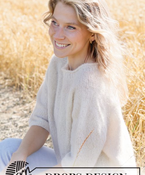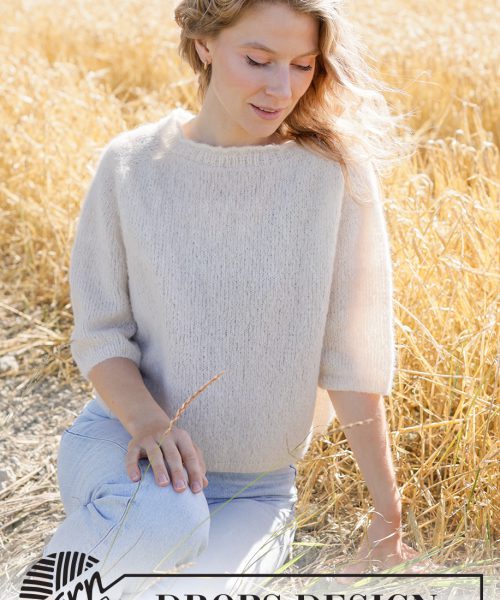 Strikket genser i DROPS Brushed Alpaca Silk. Arbeidet strikkes ovenfra og ned med sadelskulder, rullekant, glattstrikk og korte ermer. Størrelse XS – XXXL.