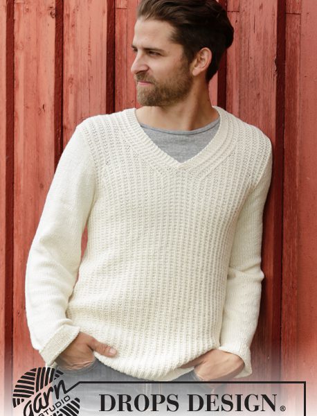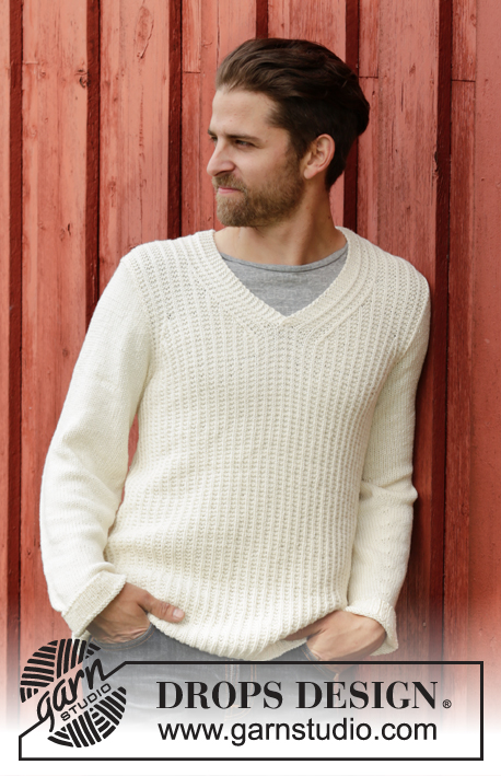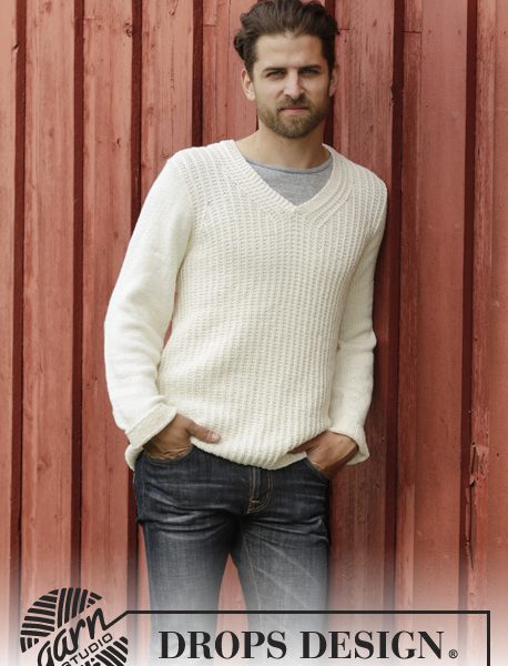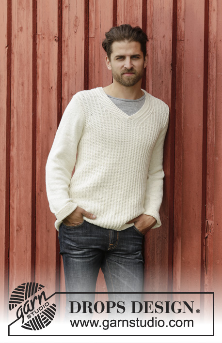 Strikket genser til herre i DROPS Cotton Merino eller DROPS Daisy med strukturmønster og v-hals
