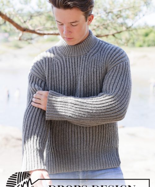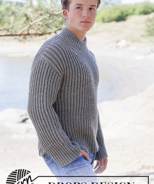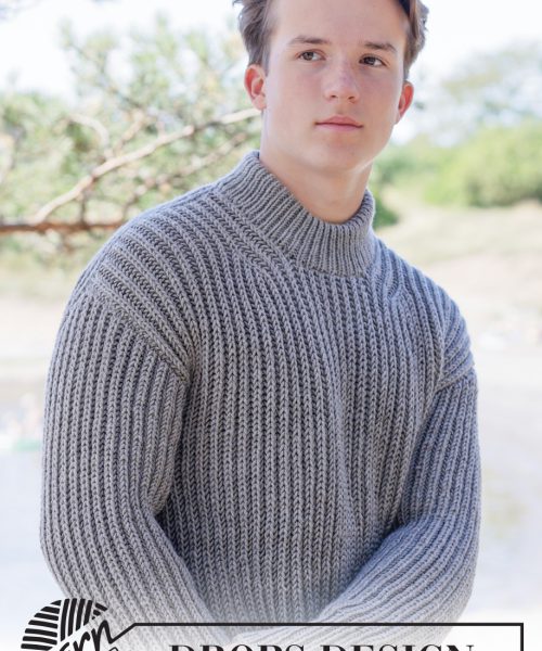 Strikket genser til herre i DROPS Big Merino. Arbeidet strikkes ovenfra og ned med europeisk skulder / skrå skulder, helpatent og dobbel halskant. Størrelse XS – XXL.