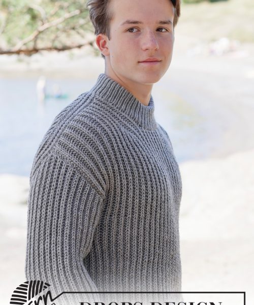 Strikket genser til herre i DROPS Big Merino. Arbeidet strikkes ovenfra og ned med europeisk skulder / skrå skulder, helpatent og dobbel halskant. Størrelse XS – XXL.
