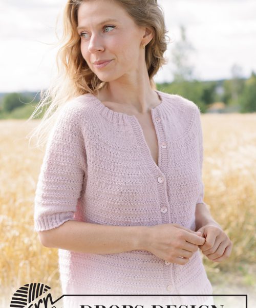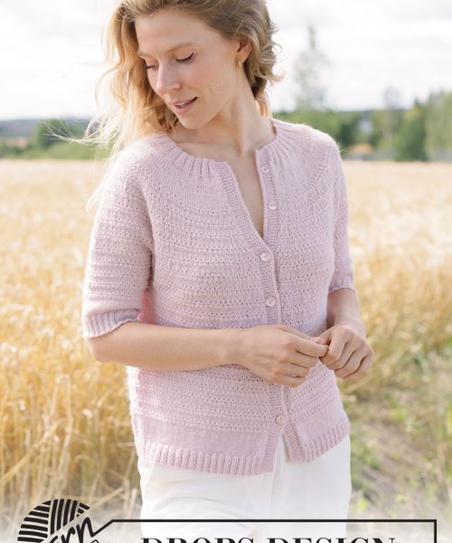 Strikket jakke med korte ermer i DROPS Alpaca eller DROPS Flora. Arbeidet strikkes ovenfra og ned med rundfelling, relieff mønster og i-cord. Størrelse XS – XXXL.