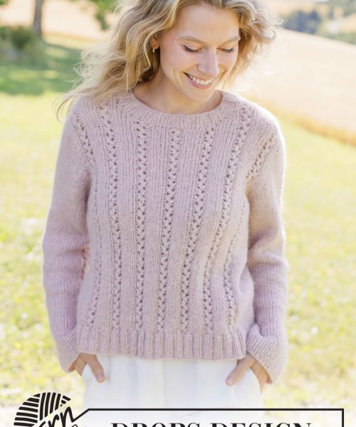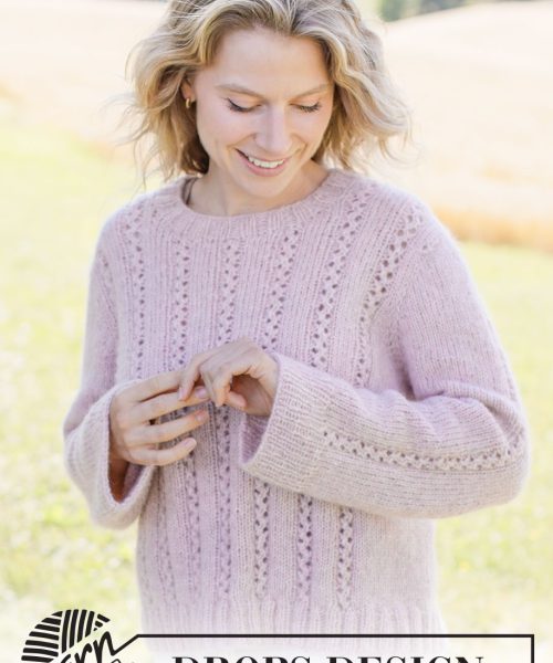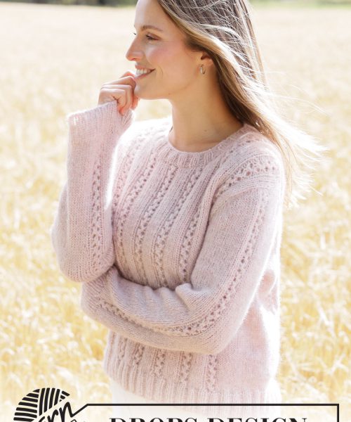 Strikket genser i DROPS Air. Arbeidet strikkes ovenfra og ned med europeisk bærestykke og hullmønster. Størrelse XS – XXXL.