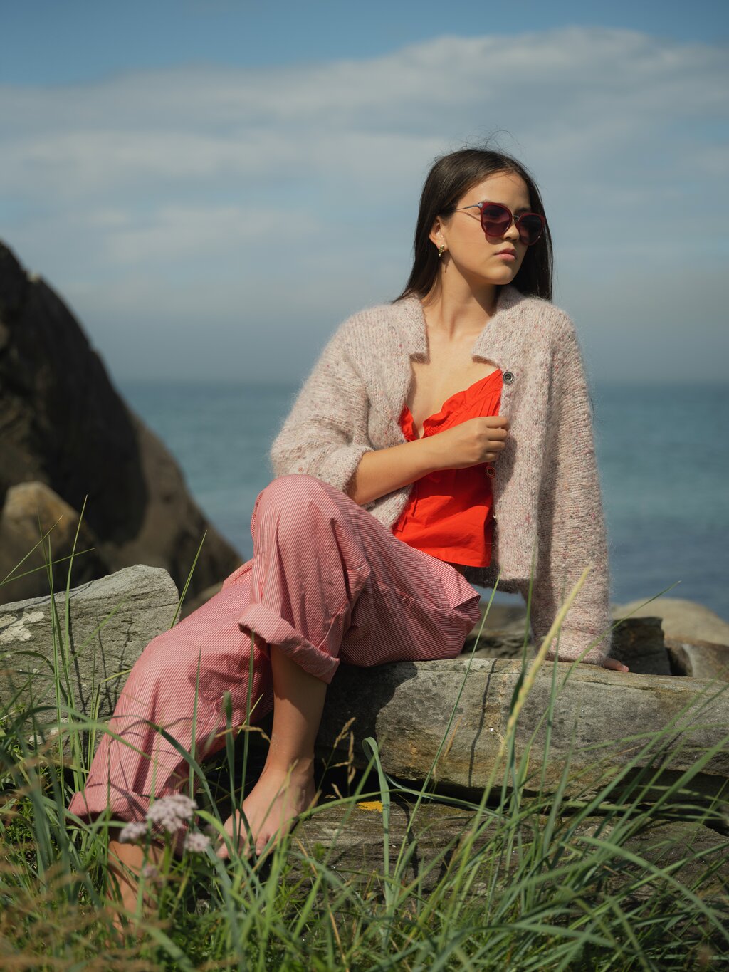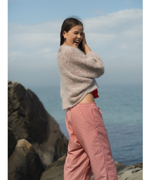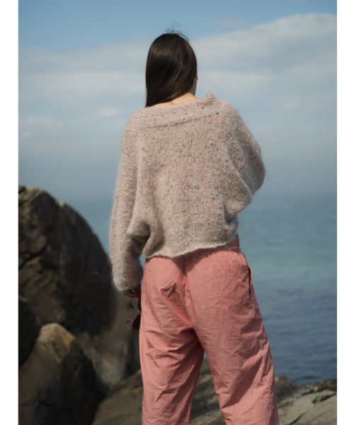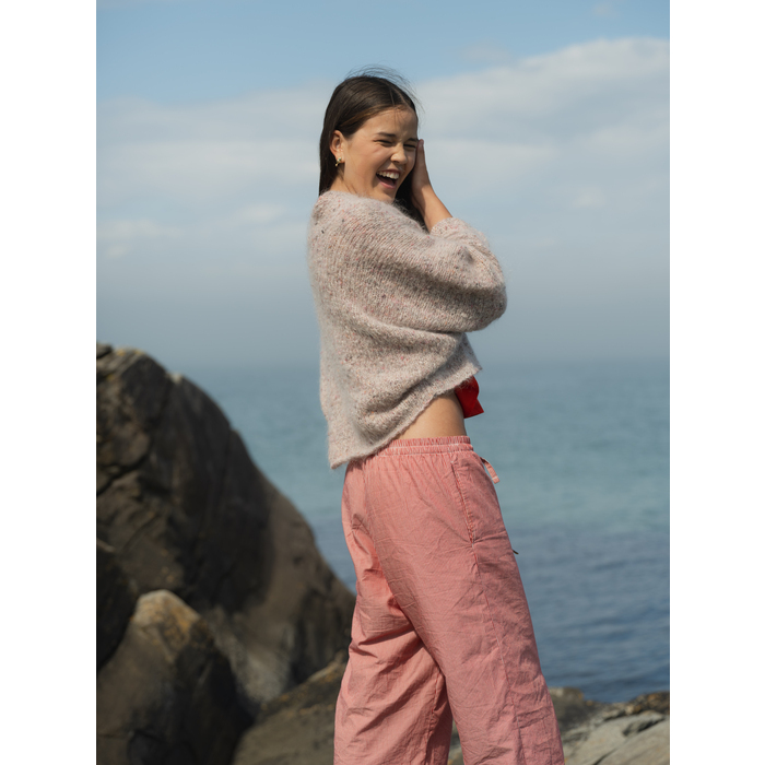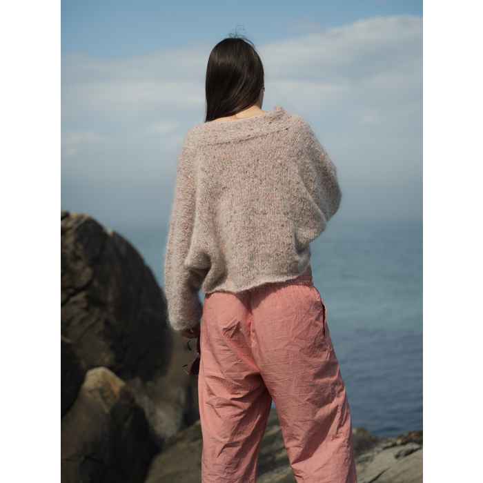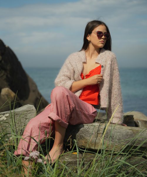 ROSITA jakke i pink tweed Påfugl in Paris. Jakken er strikket i ett stykke.