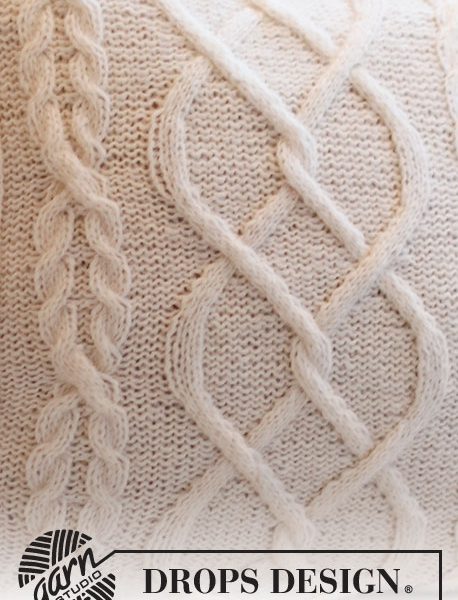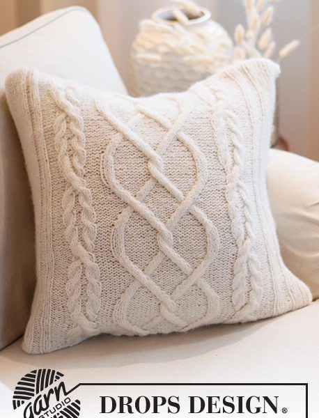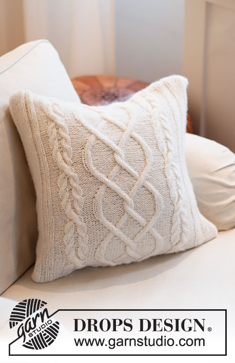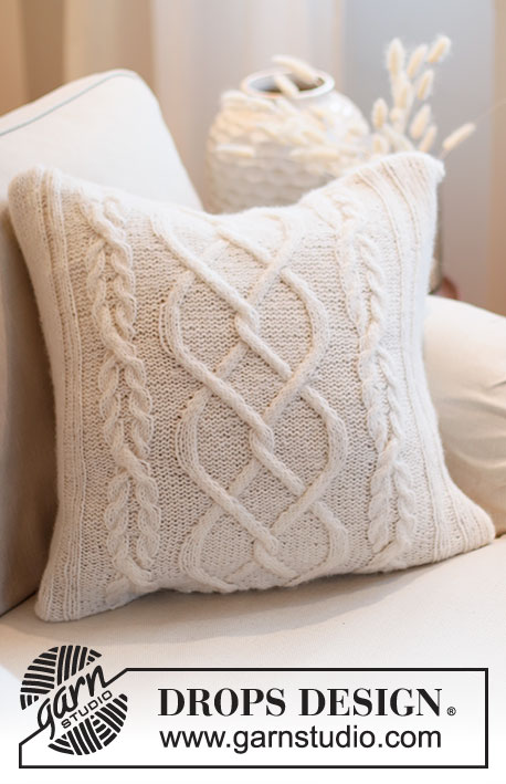 Strikket pute med fletter i DROPS Air. Passer til pute 45 x 45 cm.