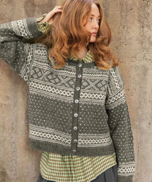 Setesdal damekofte i Peer Gynt kan strikkes både ovenfra og ned og nedenfra og opp, med eller uten lus på bol og ermer. Denne er med lus.