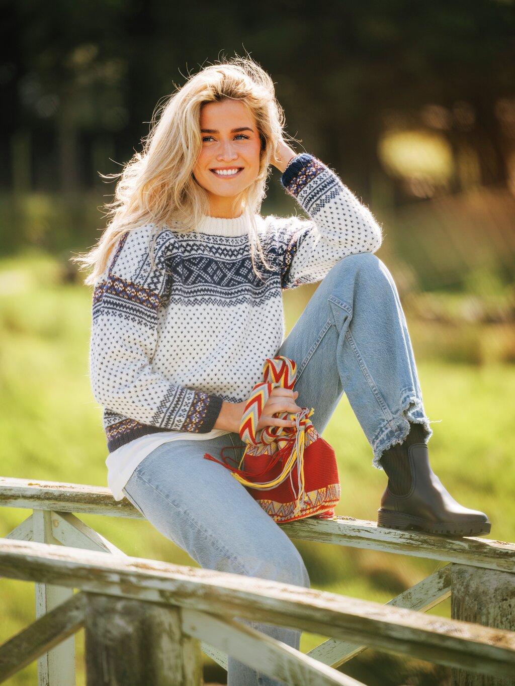 SETESDAL genser i natur Alpakka Wool og Baby Ull. Mønstret genser med isydde ermer og rund hals.