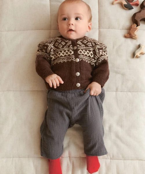 Setesdal kofte baby i myk Babyull Lanett er en liten klassiker med fine detaljer! Den strikkes ovenfra og ned uten lus, og bærestykket får den tradisjonelle Setesdal-borden som gir et tidløst uttrykk. En nydelig kofte med god passform og ekte norsk sjarm.