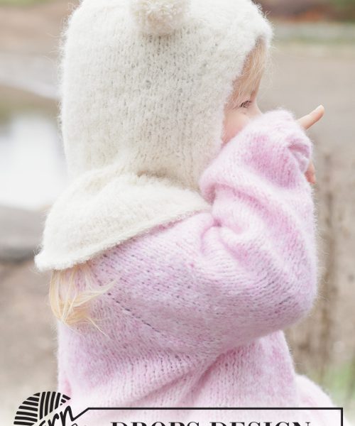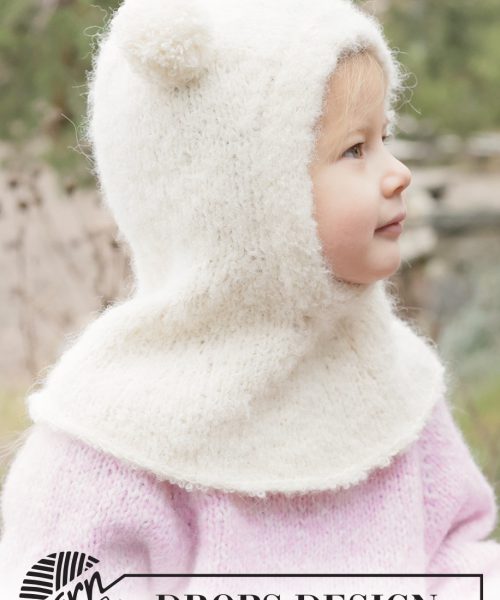 Strikket hettelue / balaklava til barn i DROPS Alpaca Bouclé og DROPS BabyMerino. Arbeidet strikkes med glattstrikk og i-cord.