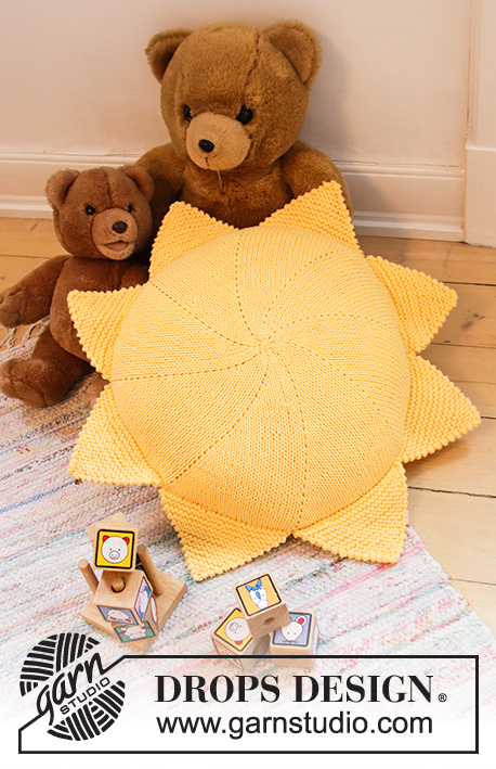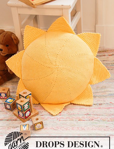 Strikket rundt putetrekk i DROPS Paris. Strikkes i sirkel som en sol.