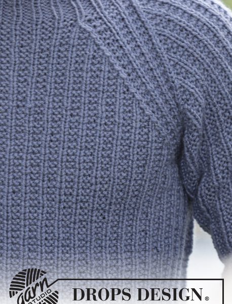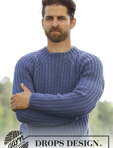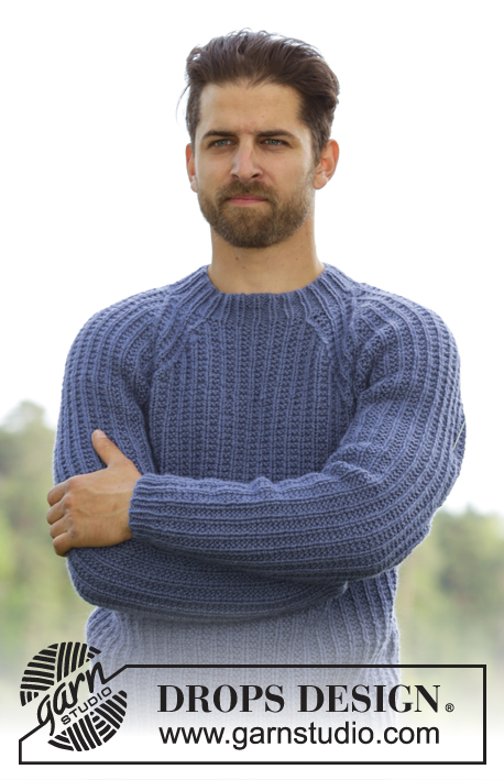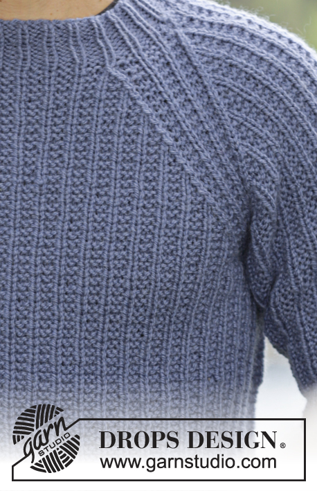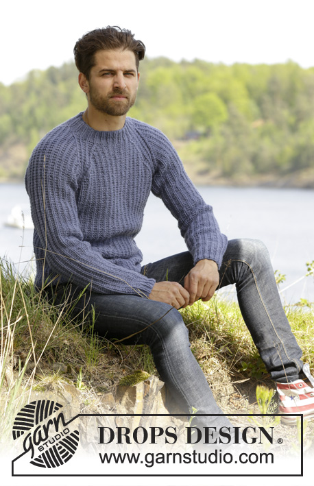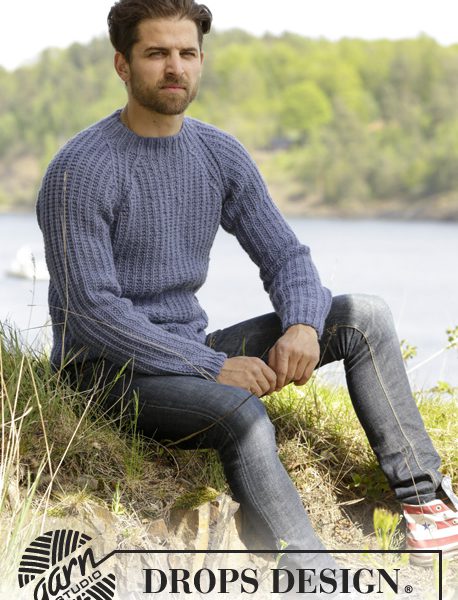 Strikket DROPS genser til herre i Nepal med strukturmønster og raglan.