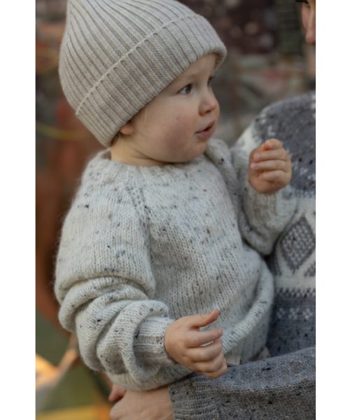 ULTIMATE genser i hvit tweed Faerytale. Glattstrikket genser med raglan.