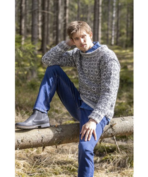 Strikkepakke UVDAL genser i mønsterstrikk og rund hals. Strikkes i garnet Pus fra Du Store Alpakka.