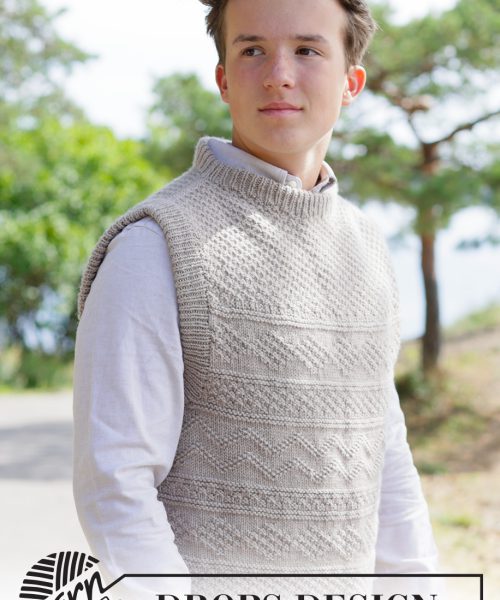 Strikket vest til herre i DROPS Karisma eller DROPS Merino Extra Fine. Arbeidet strikkes ovenfra og ned med skrå skulder, relieffmønster og rund hals. Størrelse XS – XXL.