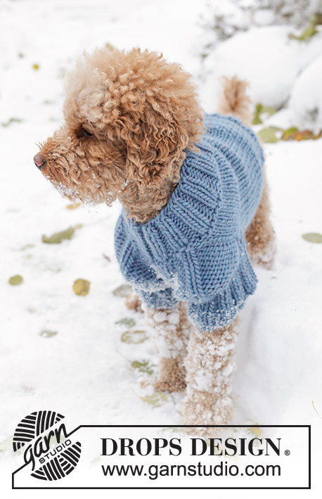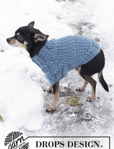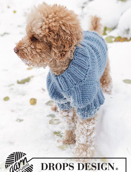 Strikket hundegenser / genser til hund i DROPS Snow. Arbeidet strikkes fra halsen til halen. Størrelse XS – L.